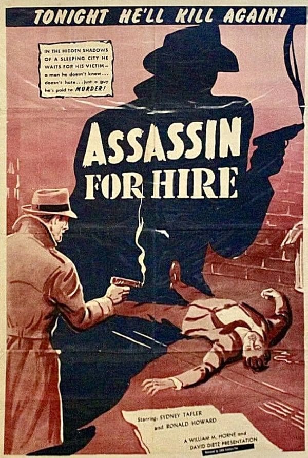 A CONSIDERATE HUSBAND & DEVOTED BROTHER IS ACTUALLY AN ASSASSIN FOR HIRE TO THE HIGHEST BIDDER. STARRING SYDNEY TAFLER, RONALD HOWARD, KATHARINE BLAKE.
